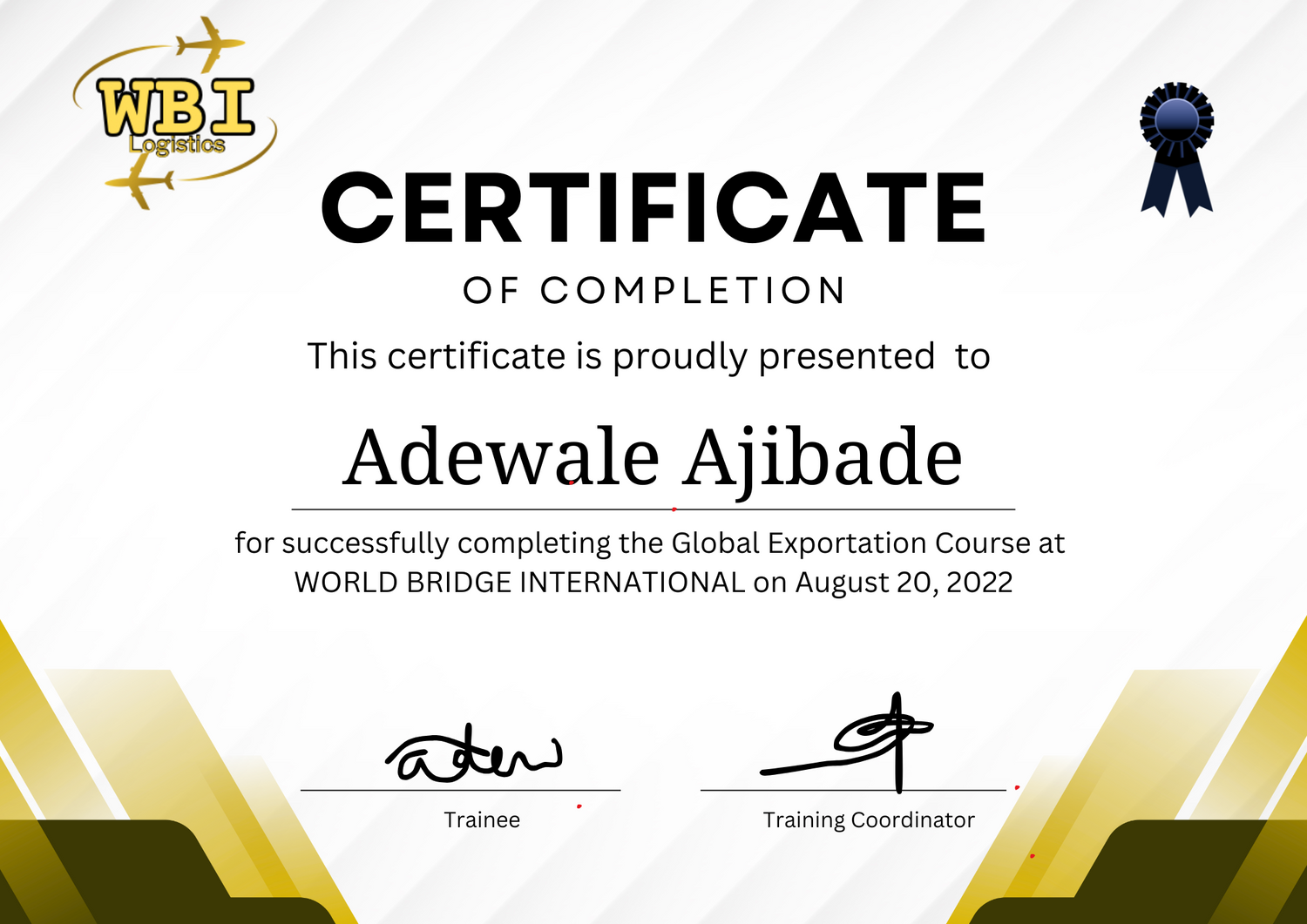 At the end of the training, participants receive a certificate of completion from WBI. This is more than just a paper — it serves as a mark of credibility, giving buyers and partners confidence that you understand the principles of exportation. It also positions you as a serious business owner, increasing your chances of being trusted in international trade.